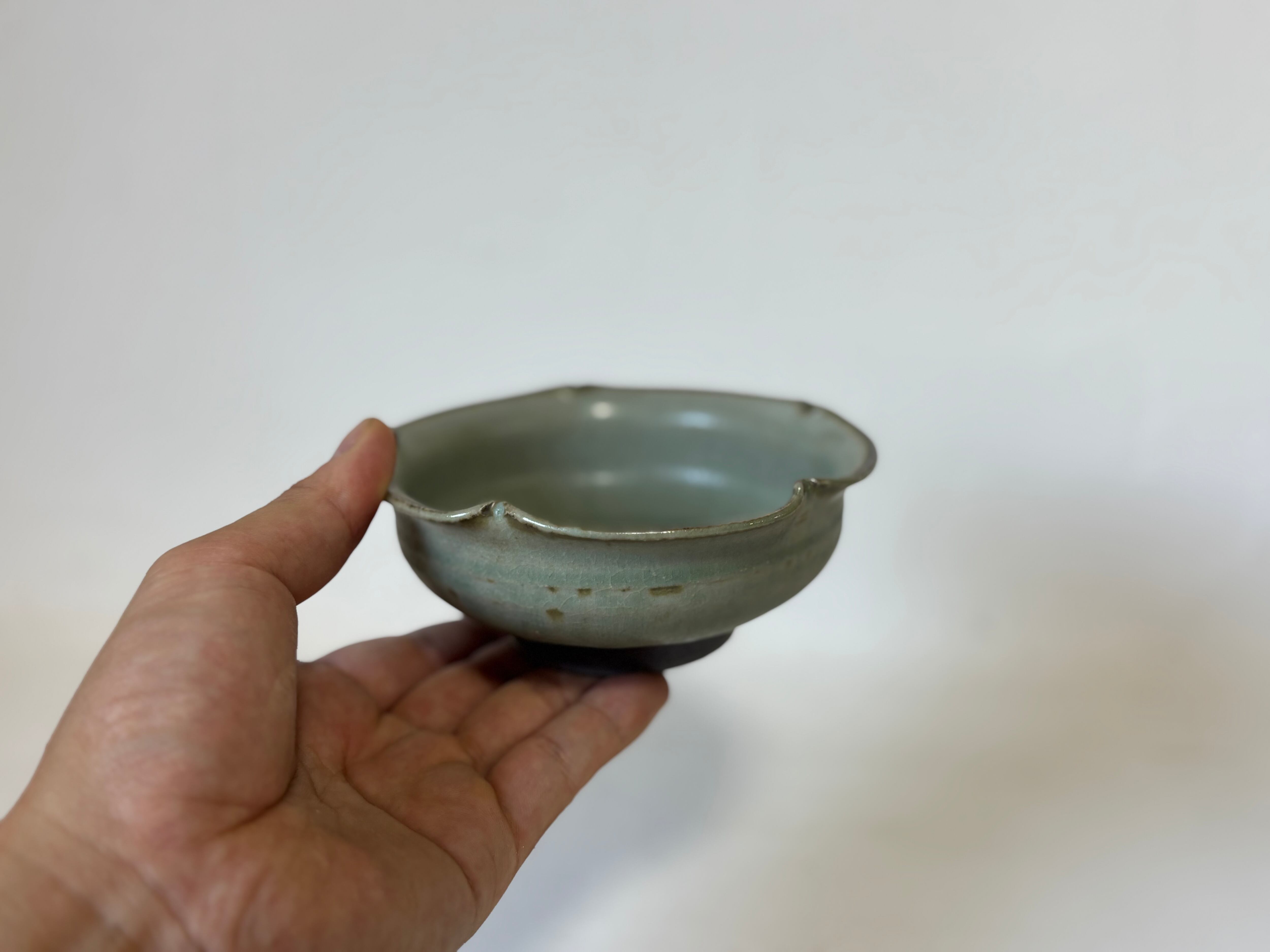 この4寸輪花鉢は、独特な5弁のデザインが魅力で、彩色灰釉を使用して丁寧に仕上げられています。