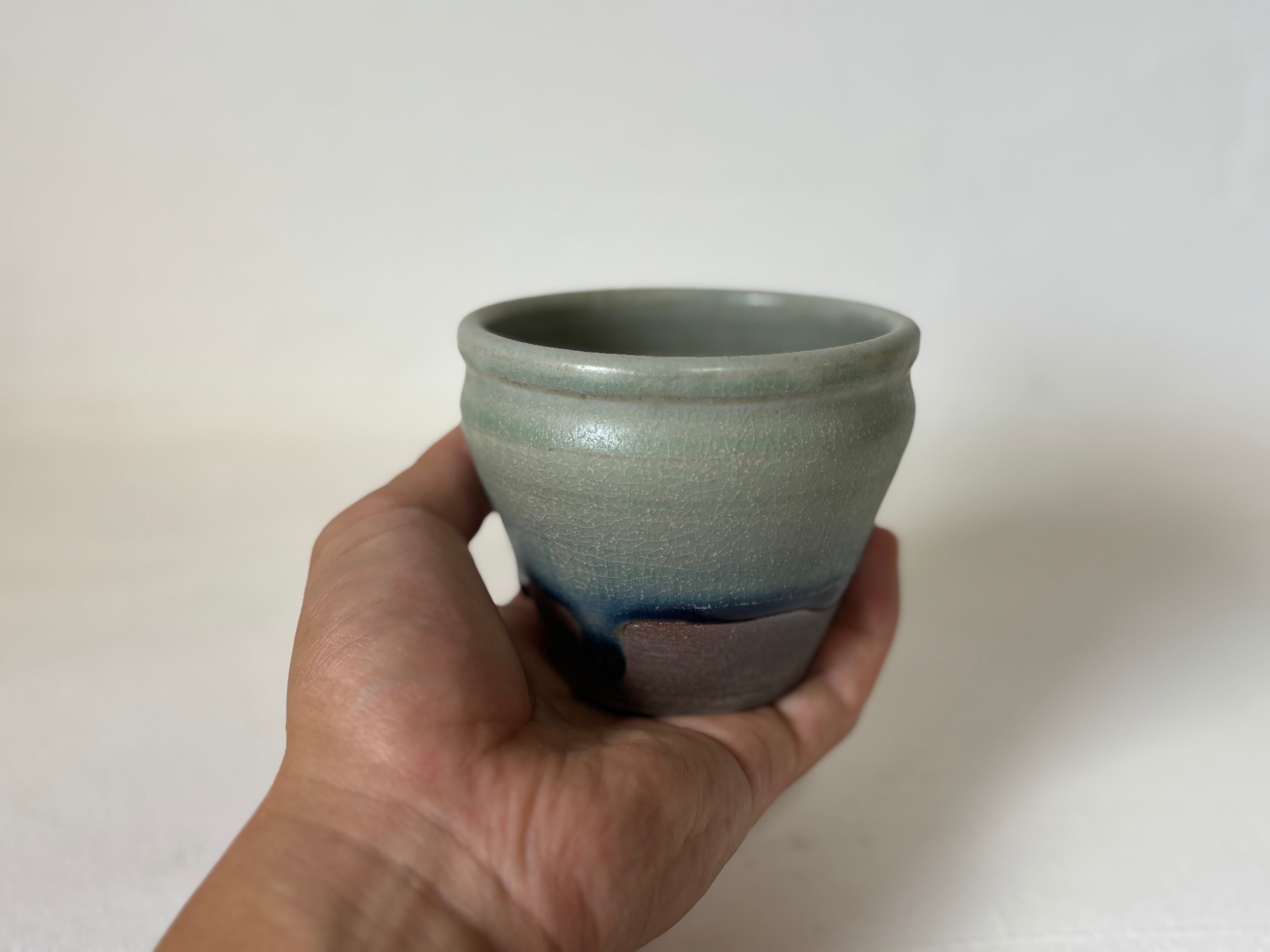 この植木鉢は、手のひらサイズでありながらも、美しい彩色灰釉が施されており、どんな植物にも映えるデザインが特長です。小さなスペースでも華やかさをプラスしてくれます。