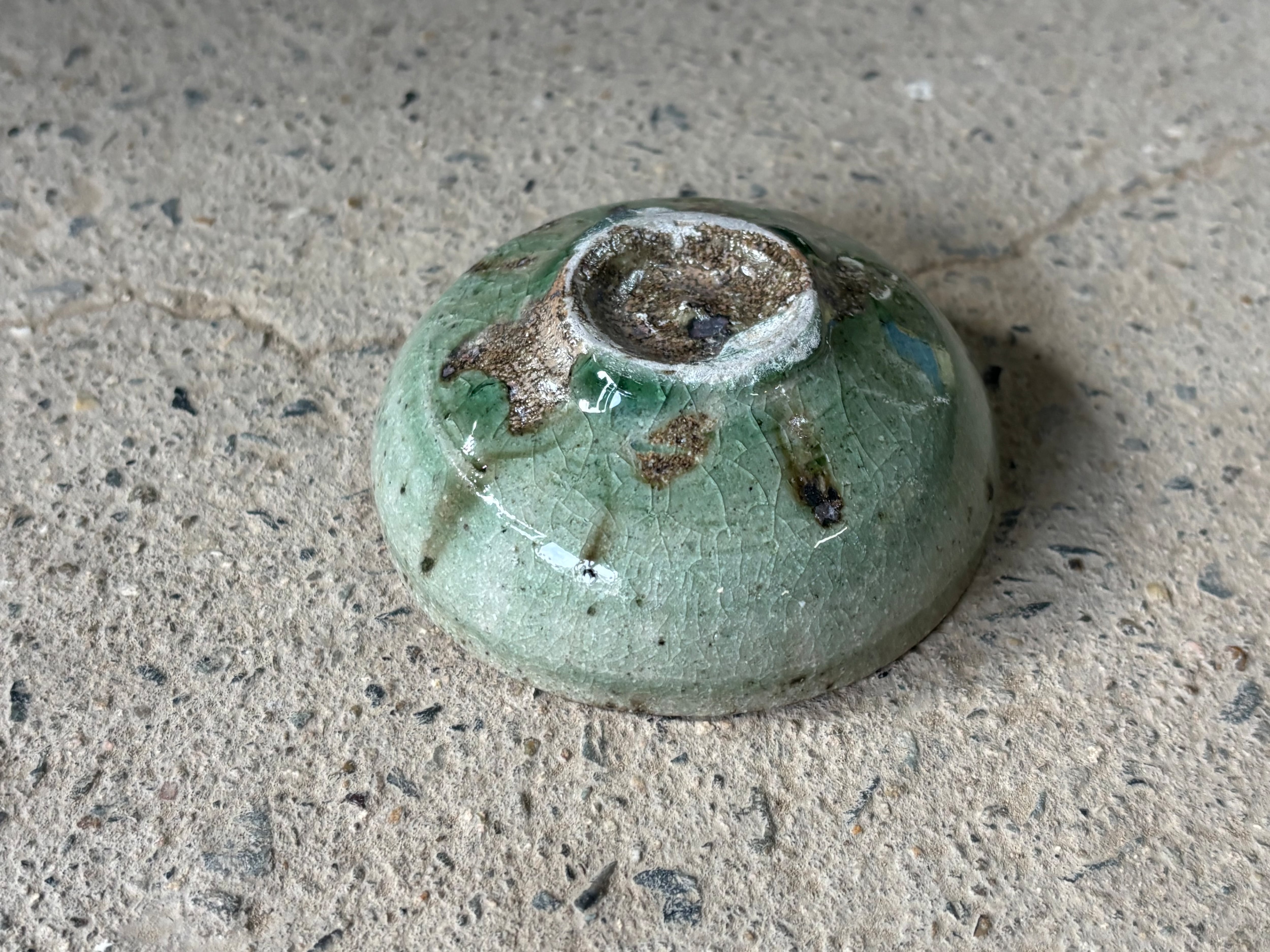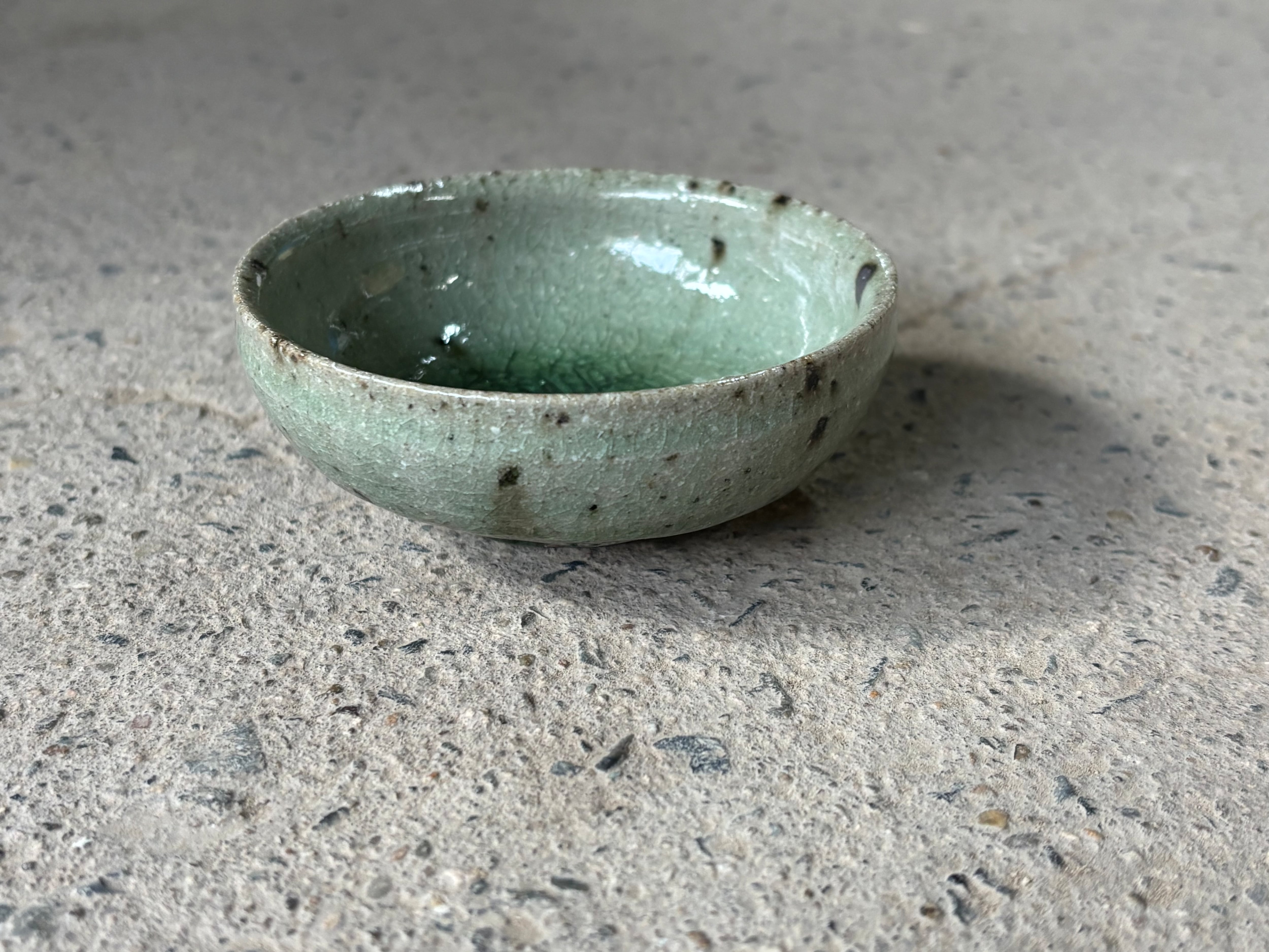 緑色の釉溜まりがとても綺麗な平杯です。